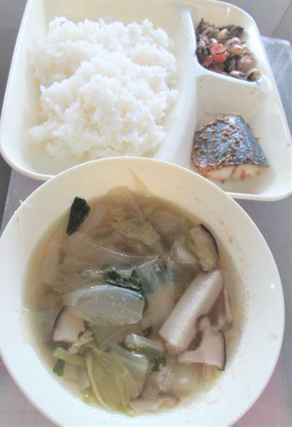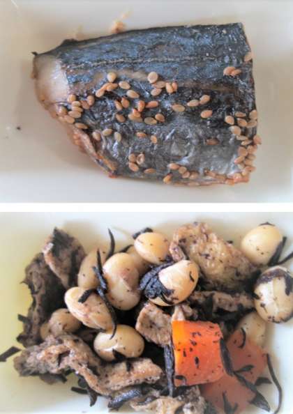 今日の給食は、さごしのごまじょうゆかけ、五目汁、大豆の煮もの、ごはん🍚、牛乳🥛です。