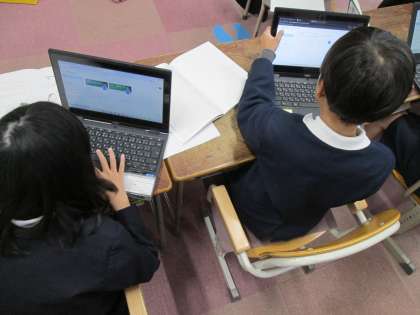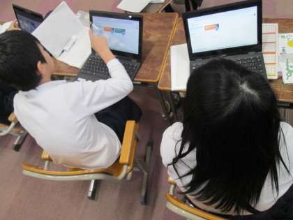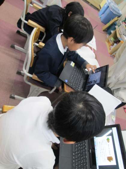なかよし学級で国語の説明文の学習をしています。タブレットPCを活用して、説明文「道具のひみつをつたえよう」で、調べたことを整理してレポートを書く学習に取り組んでいます。子どもたちが調べる道具を決めて調べたことをレポートの組み立てを考えて表現する学習です。