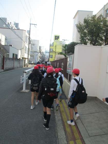 写真は、服部緑地公園へ向かう、子どもたちの様子です。、