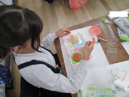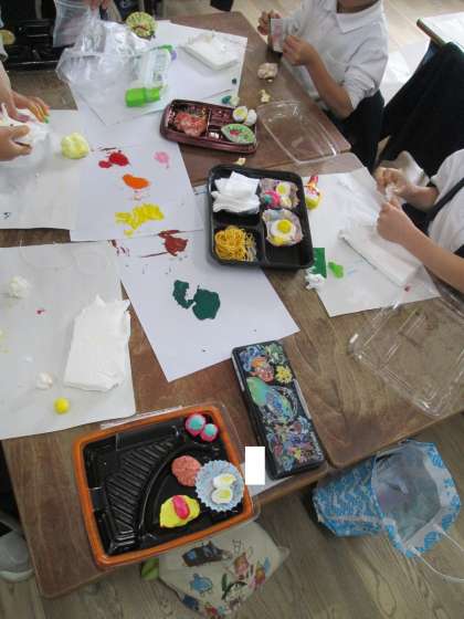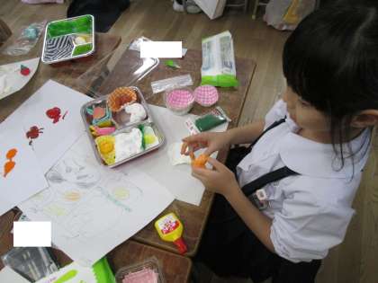 1年生が作品展に向けて工作に取り組んでいます。いろいろな材料を使って創意工夫しながら、自分が考えた「おべとう」を創作しています。完成が楽しみですね。