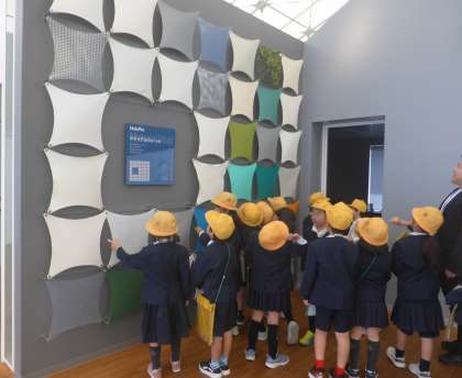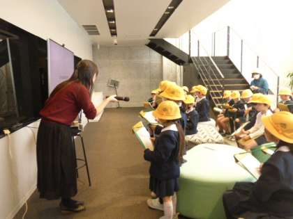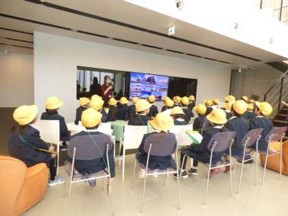 2年生が生活科で「まちたんけん」の一環として校区の会社を見学しました。国内の公共施設や民間施設、海外でのスタジアムや国際空港、博覧会場など、数多くの建築事業などをしている会社への見学でした。