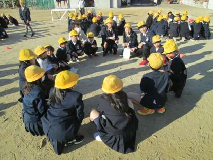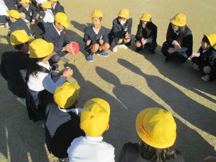 子どもたちは、たてわり班で円を作ってゲームを楽しみました。
