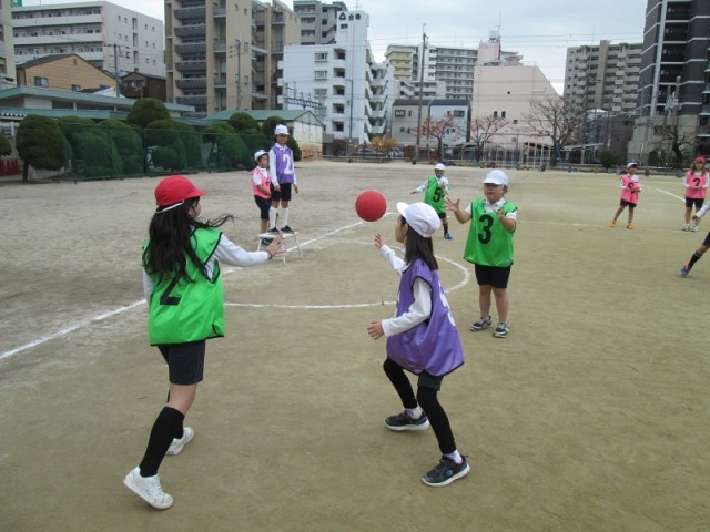 4限目に4年生が体育の学習に取り組んでいました。ポートボールは、ゴール型ゲームで、規則を工夫したりゲームに応じた作戦を考えてチームで協力して取り組んでいきます。子どもたちは、声を掛け合いながらゲームをしていました。