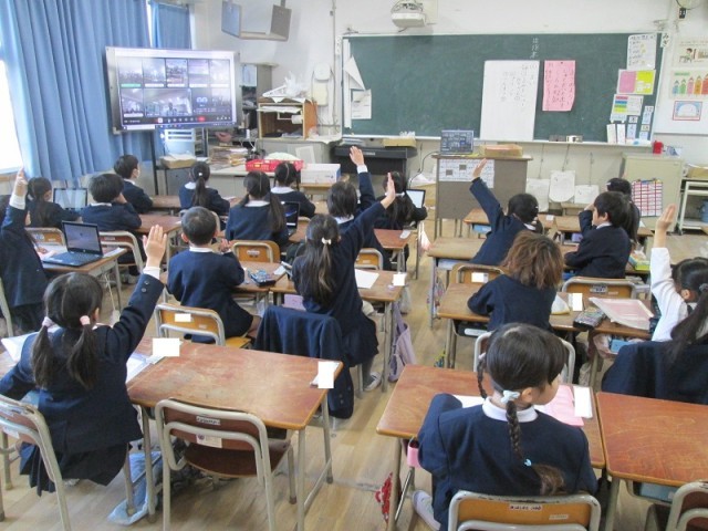 写真は1年生の教室での様子です。子どもたちは、口々にスリーヒントの間に答えを導きだしていました。