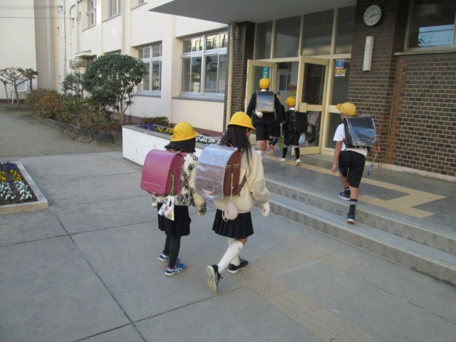 冬日和の中、今朝も子どもたちは元気に登校しています。