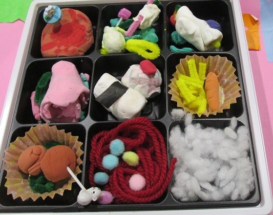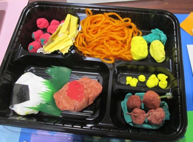 1年生は、工作「とっておきのべんとう」、描画は、子どもたちが選んだ題材でした。
