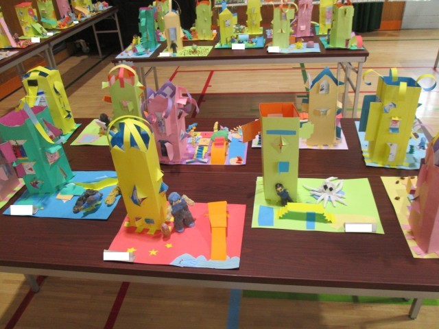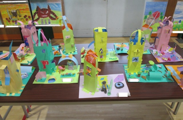 2年生は、工作「まどをあけたら」、描画は、子どもたちが選んだ題材でした。