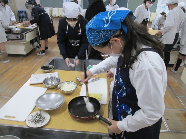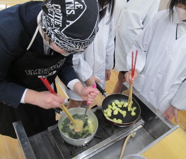 6年生が家庭科で調理実習に取り組みました。