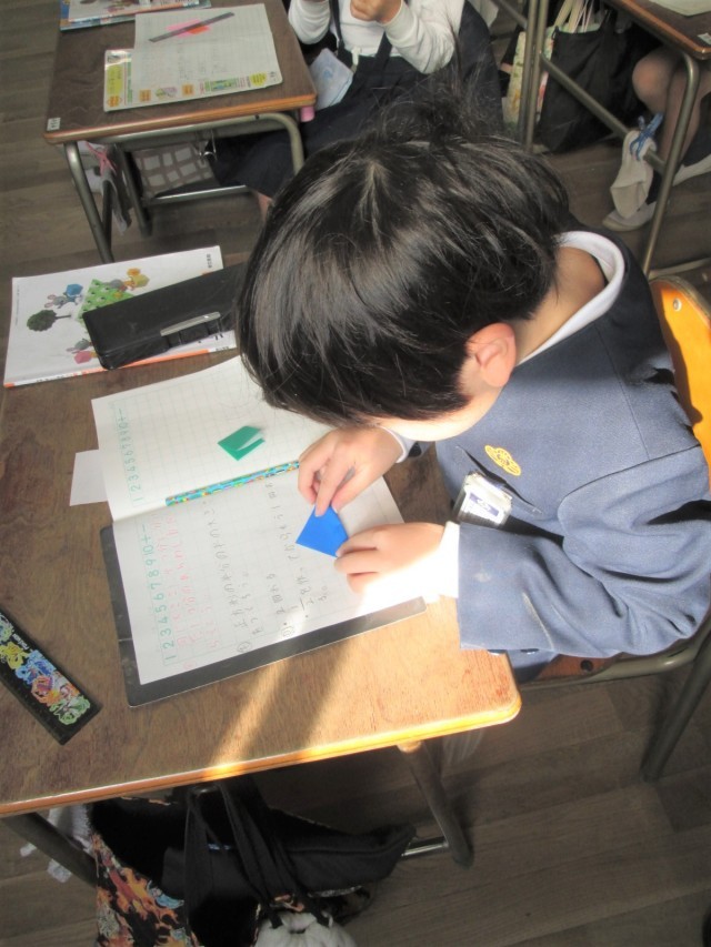 2年生が算数で公開授業を行いました。単元「分けた大きさのあらわし方をしらべよう」で、はじめての分数の学習でした。