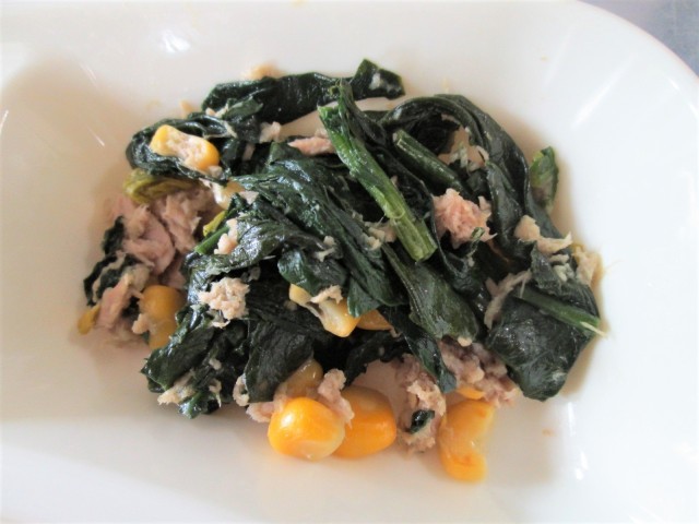 今日の給食は、ミートボールと野菜🥬のカレー煮、ツナとほうれんそうのソテー、パインアップル🍍(カット缶)、黒糖パン、牛乳🥛です。