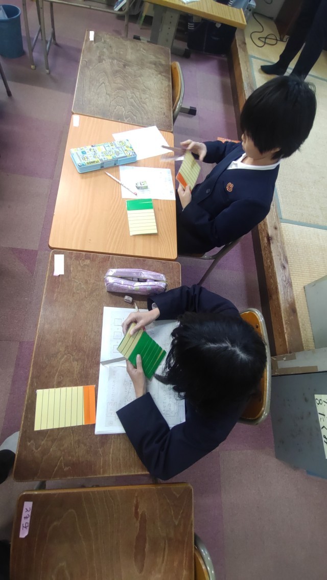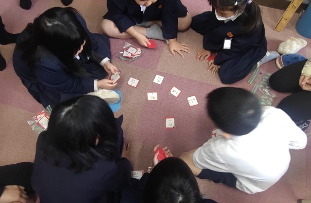 学習の最後には、算数カードを使って、小数や分数の大小を読み取るゲームに取り組みました。