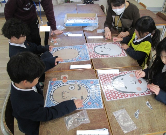 「駒回し」「めんこ」「あやとり」「けん玉」「カルタ」「だるま落とし」など、子どもたちがコーナーを回って、