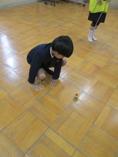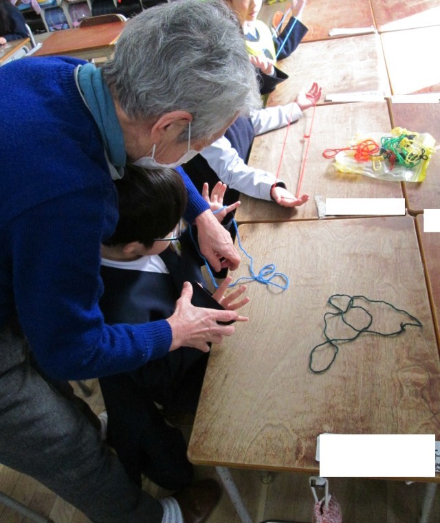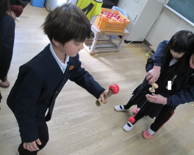1年生の子どもたちが、木川地域の老人会の方々に来ていただき昔遊びを教えていただきました。