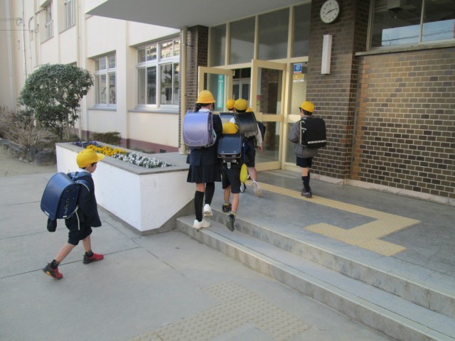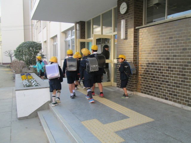 2月14日(土)、土曜日ですが子どもたちは、登校時間を守って元気に登校しています。