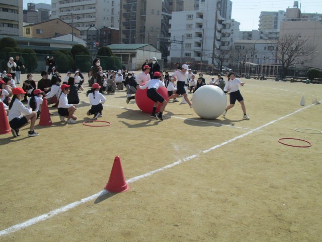 「玉入れ」「台風の目」「大玉おくり」など、子どもたちは楽しそうに活動していました。