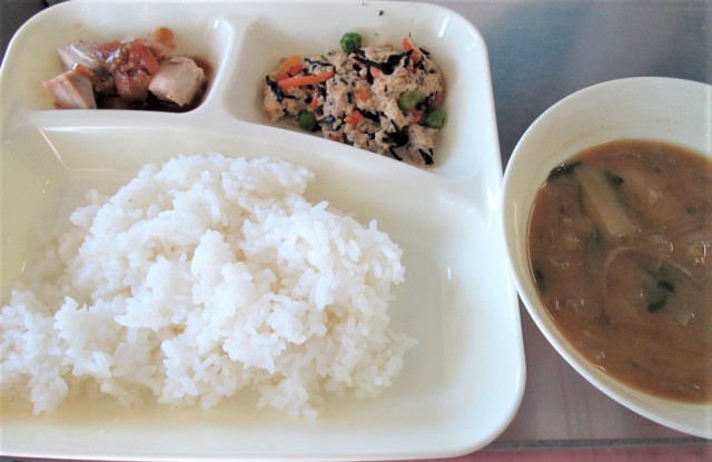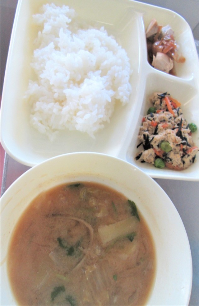 今日の給食は、まぐろのねぎじょうゆかけ、みそ汁、高野どうふのいり煮、ごはん🍚、牛乳🥛です。