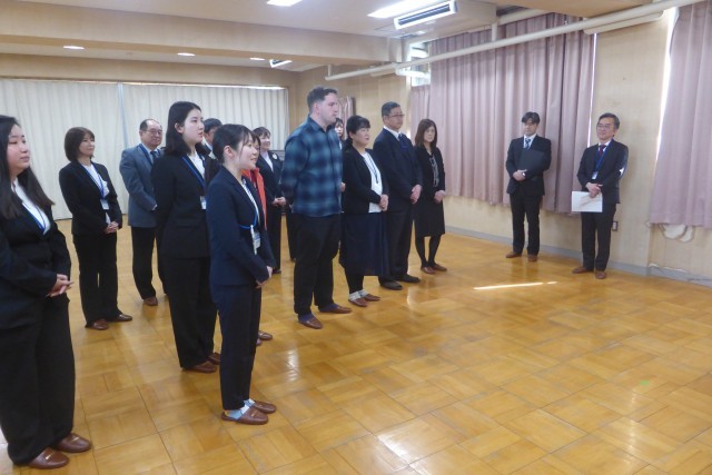 着任式では、最初に校長として着任された岸本昌悟先生をはじめ15名の教職員からの自己紹介がありました。