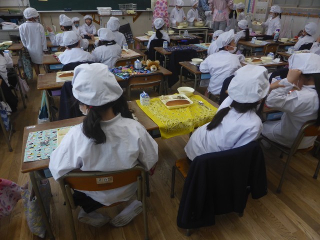 今日の献立は、豚肉のガーリック焼き、スープ、ツナとキャベツのソテー、黒糖パン🍞、牛乳🥛です。