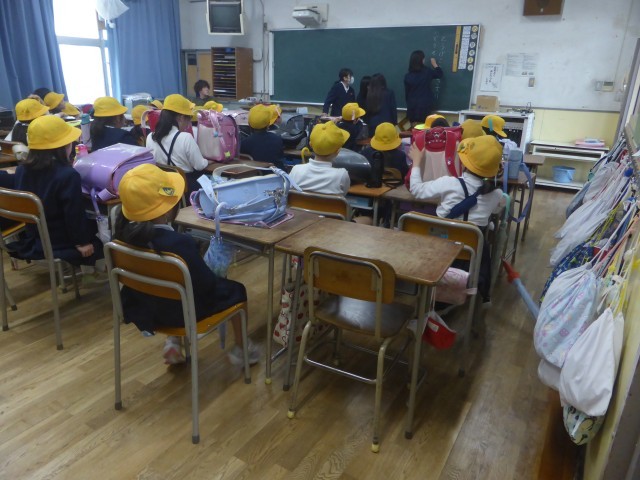 各地域別教室に集まって、木川小学校の約束を確認したり、交通安全について話し合ったりしました。