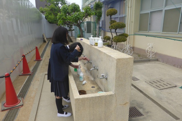 その後、保健委員会は、手洗い場の石けんの補充をしていました。