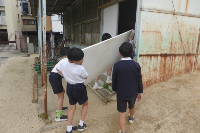 また、運動委員会は、ジャンピングボードを片づけたり、新しい体育倉庫の中を確認したりしていました。
