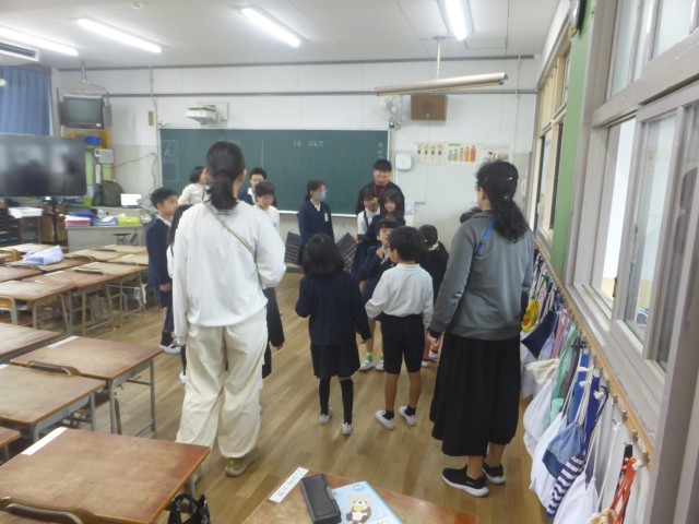 子どもたちは、たてわり班の教室に移動し、自己紹介をしたり、ペアの友だちや並び方の確認をしたりしました。