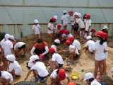 生活科の学習でどろんこ遊びをしました。 遊び道具を使って、どろだんごを作った...