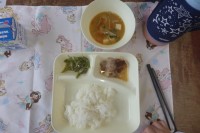 今日は、本年度最後の給食です。献立は、いわしのフライ、みそ汁、ほうれんそうのごま...