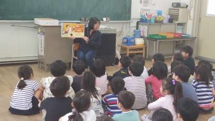 今日は初めての朝の読み語り会がありました。がちゃぽんさんによる絵本の読み聞かせに、子供達は目をキラキラさせて集中して聞いていました。