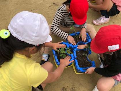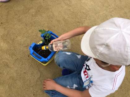 生活科「大きくなあれ わたしのやさい」の学習でトマトの苗を植えました。「大きくなってね!」「ぐんぐん伸びてね!」と言いながら苗を植えたり、水やりをしたりしている姿が見られました。トマトが今後大きくなっていく様子をホームページに載せていきますので、保護者の皆様も楽しみにしていてください。