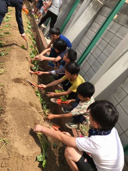 6月初めのなかよしタイムは、サツマイモの苗植えです。