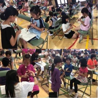 この曲は6年生に続き、3年生が山びこのように、まねをして吹きます。
