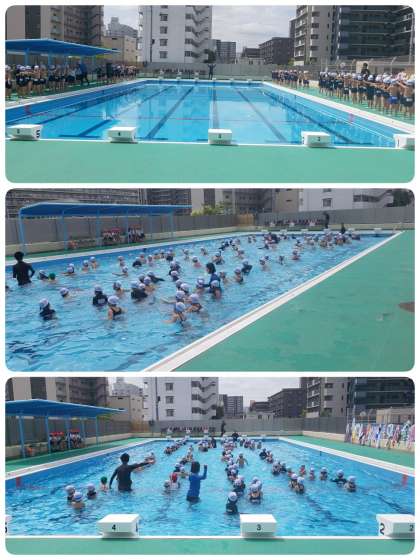 小学校で初めてのプール。