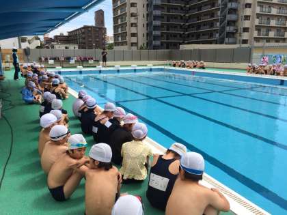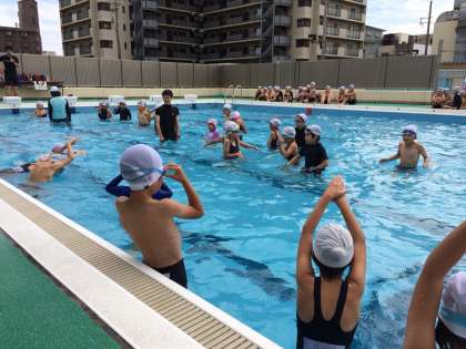 気温が低かったので、シャワーから寒さを感じていましたが、新しい活動にワクワクしながら楽しく泳いでいました。2年生で養った水に浮く感覚をもとに、楽に泳ぐ力をつけていきたいと思います。