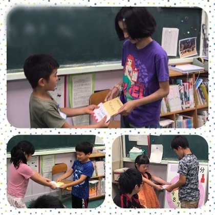 最後に「しりとり」をしてを楽しみました。子どもたちは難しい言葉を考えて、全員が途切れずに発表していました。