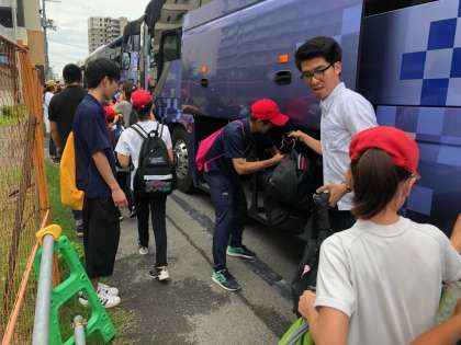 バスに荷物を積み込み、準備完了!