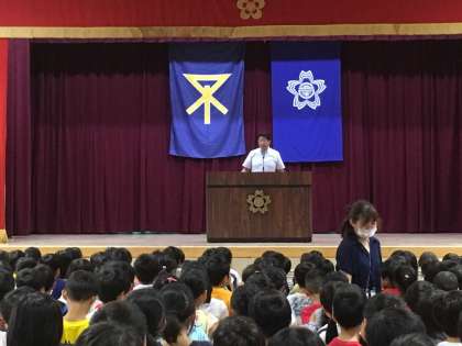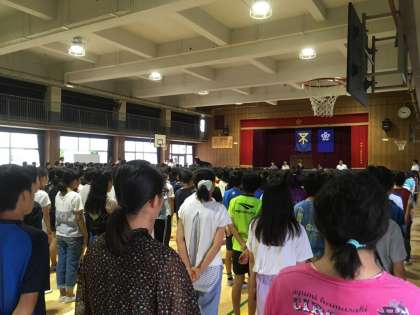 校長先生・生活指導主任より1学期の振り返り・夏季休業中の生活についてお話があり、子どもたちは静かに話を聞いていました。