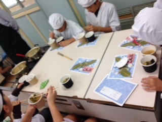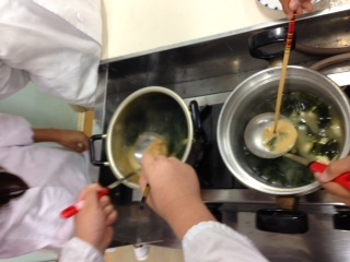 10月9日(木)、6年生が家庭科の授業の一環として「だし」の出前授業を受けました。講師は大阪の老舗「小倉屋昆布」や、大阪昆布商工業組合の方々です。昆布とかつおでだしをとった味噌汁と水だけの味噌汁の2種類を作り試食。おいしさ、風味が「全然違う!」と各班から歓声が上がりました。「すごく簡単だったので、ぜひ家でもだしを取って作ってみたいです。」との感想が出ました。