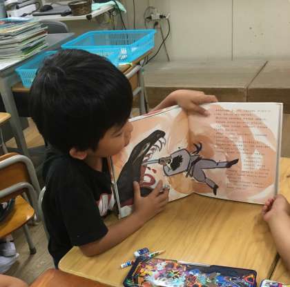 グループで話し合って、図書室から神話やむかしから伝わるお話の本を1冊ずつ借り、今日は、クラスのみんなに読み聞かせをするために、練習をしました。みんなにしっかりと伝わるように、句読点やセリフの言い回しに気をつけて、何度も何度も練習していました。
