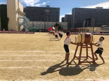 後半は応援合戦(午前の部)と全校競技(大玉転がし)の練習でした。