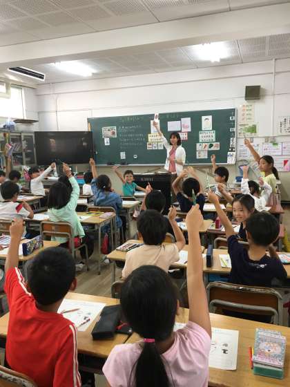 栄養教諭の先生に、「きゅう食のひみつ〜バランスよく食べよう〜」をテーマに食に関する指導をしていただきました。はじめに、うどんの写真と給食の写真を見比べて、どちらを食べたら元気になれるかを考えました。全員一致で、「給食」と答え、「給食には、赤・黄・緑の種類の食べ物が揃っているから。」や「栄養がいろいろと入っていておいしい。」という意見がでました。