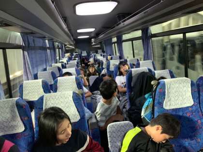 みんな元気です。ただ、遊び疲れてバスの車内で寝ている子もいるようです。
