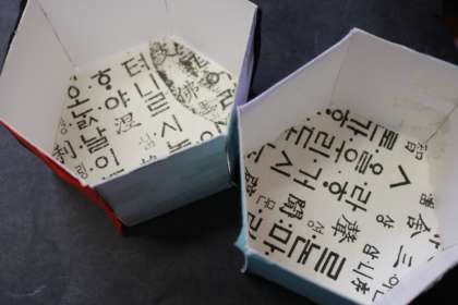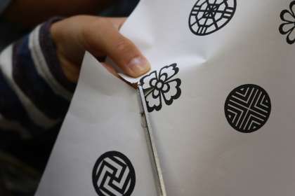先週に引き続き、工作を行い、全員の作品が仕上がりました。ハンヂ(薄い和紙)を貼った上に、文様(ムニャン)をつけて完成させました。