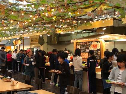 美味しそうなハム、ソーセージ、新鮮なお野菜、果物、お味噌汁やカレーもあってお腹いっぱいになりました。