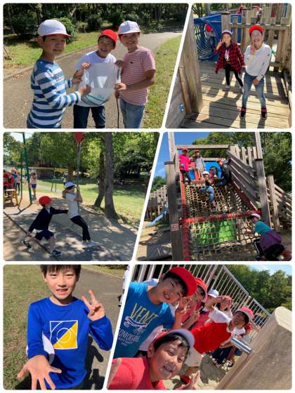 公園には、いつも体験できない遊具がたくさんあり、他校の児童も譲り合いながら安全に遊ぶことができていました。