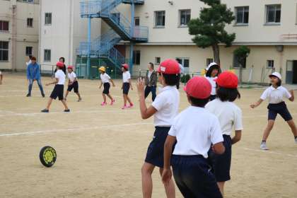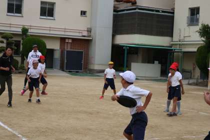 たくさんの保護者の方々に参加していただき、子どもたちと一緒に楽しく活動することができました。フリスビーを上手に投げたり、キャッチしたりできる子どもがたくさんいました。「もっとドッジビーをしたい!」という声がたくさん聞かれるほど大盛り上がりでした。