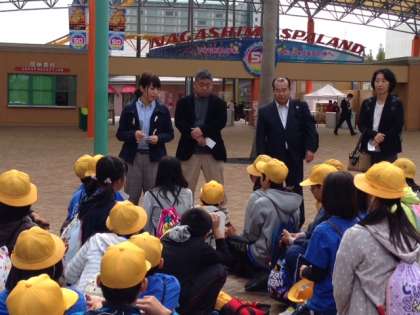 ナガシマスパーランドに到着しました。大きなジェットコースターがいっぱいでびっくりです。まずは先生たちの注意をよく聞いて、絶叫系が得意な子も苦手な子も、さぁ今から楽しむぞ〜!