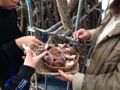 2日目の朝は、農場の仕事体験です。牛にえさをあげたり、椎茸の原木を運んだりします。おいしい空気を胸いっぱいに吸い込んで自然の中で働くと、体の奥からきれいになっていくようです。