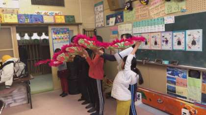 扇の扱いも、練習を重ねるごとに上手になってきました。また、動きも滑らかになってきました。