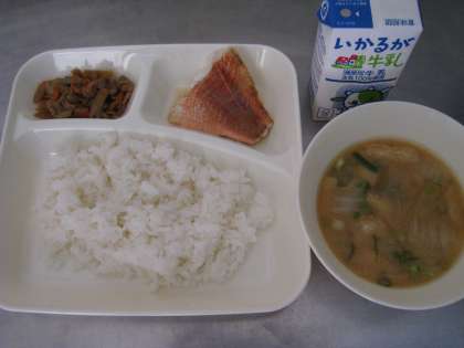11月8日(金)の給食に、あかうおのしょうゆだれかけが登場しました。